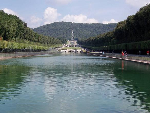 La Reggia di Caserta: un'immagine elaborata dell’atterraggio Per i revisionisti, i borbonici costruirono: palazzi reali, ponti in ferro, acquedotti, strade, porti, industrie, parchi e giardini, navi a vapore, locomotive, trafori, ed altro.