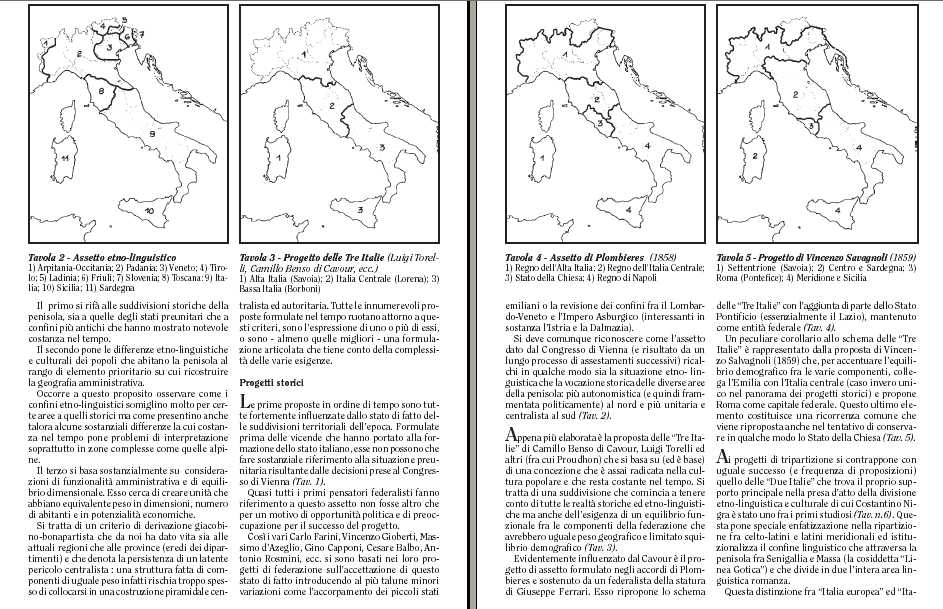 Esso ripropone lo schema delle "Tre Italie" con l'aggiunta di parte dello Stato Pontificio (essenzialmente il Lazio), mantenuto come entità federale (Tav. 4).