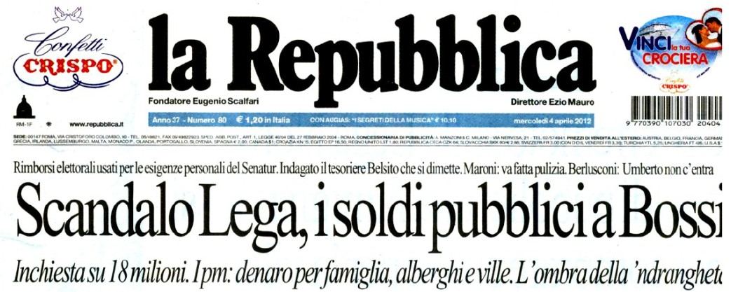 Non siamo tra quelli che gioiscono dei guai della Lega Nord, per il semplice fatto che ci pare un attacco concentrico volto a porre un velo tricolore su quegli interessi padanocentrici che hanno coccolato e sponsorizzato una formazione politica che si presentava come portatrice della buona amministrazione rispetto a “Roma ladrona” e al “Sud mafioso”. Inoltre vedere le forze dell'ordine dentro la sede di un partito ci fa venire in mente gli scarponi chiodati e ci fa una certa impressione.