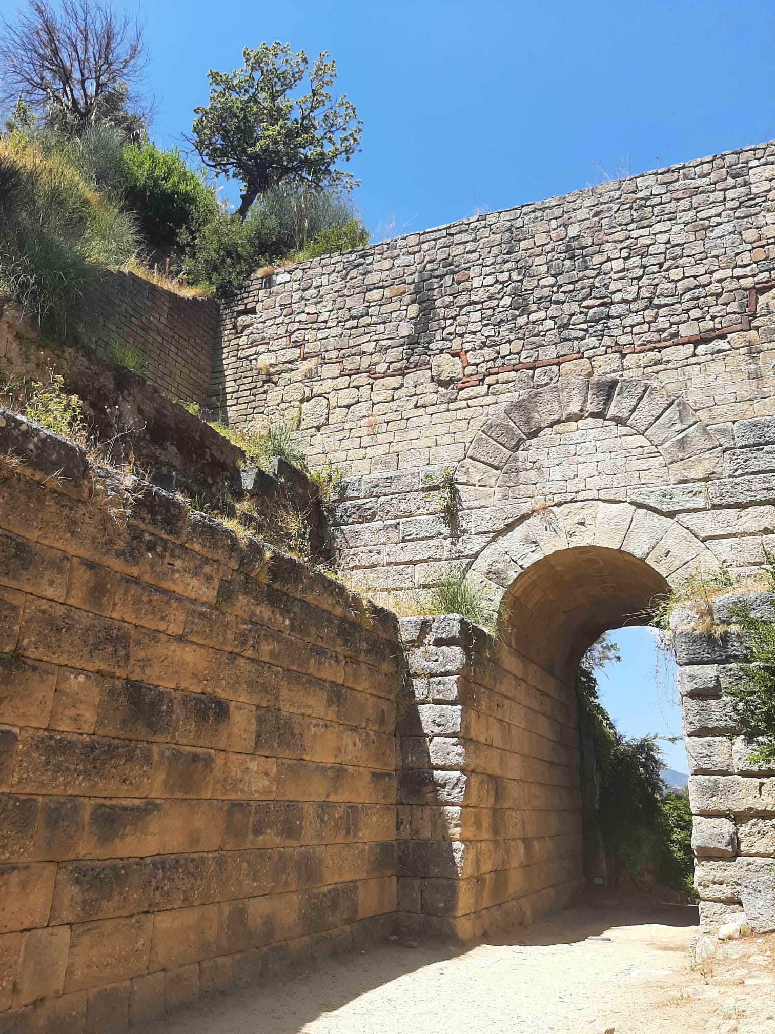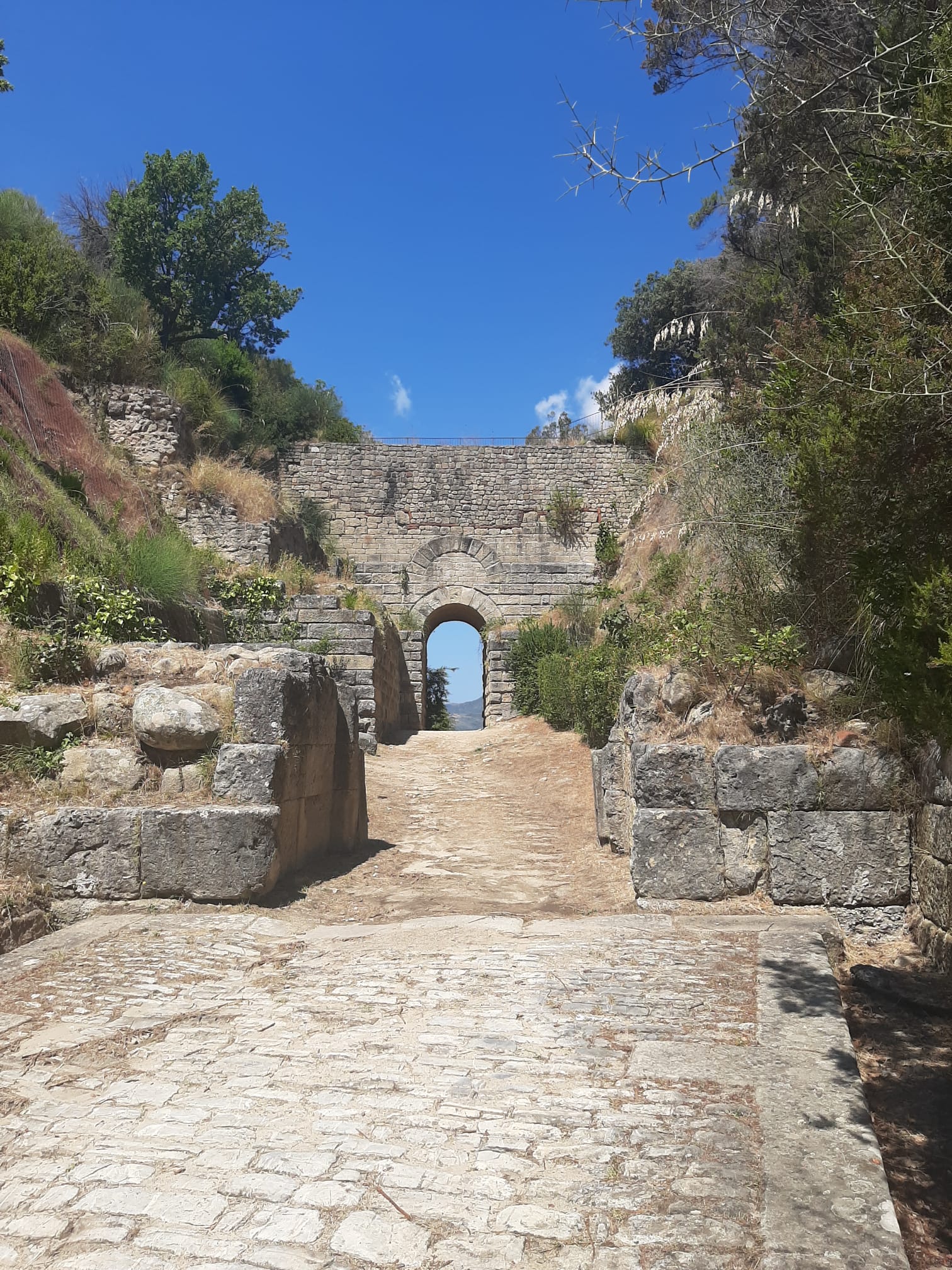 Porta di ingresso alla città di Elea nel Cilento. Era detta la Porta Rosa perché al tramonto il sole la rende di questo colore. Parmenide diceva che la porta divideva i sentieri del Giorno e della Notte. Nei suoi pressi egli amava scrivere e declamare i versi della sua opera filosofica "Sulla Natura". |